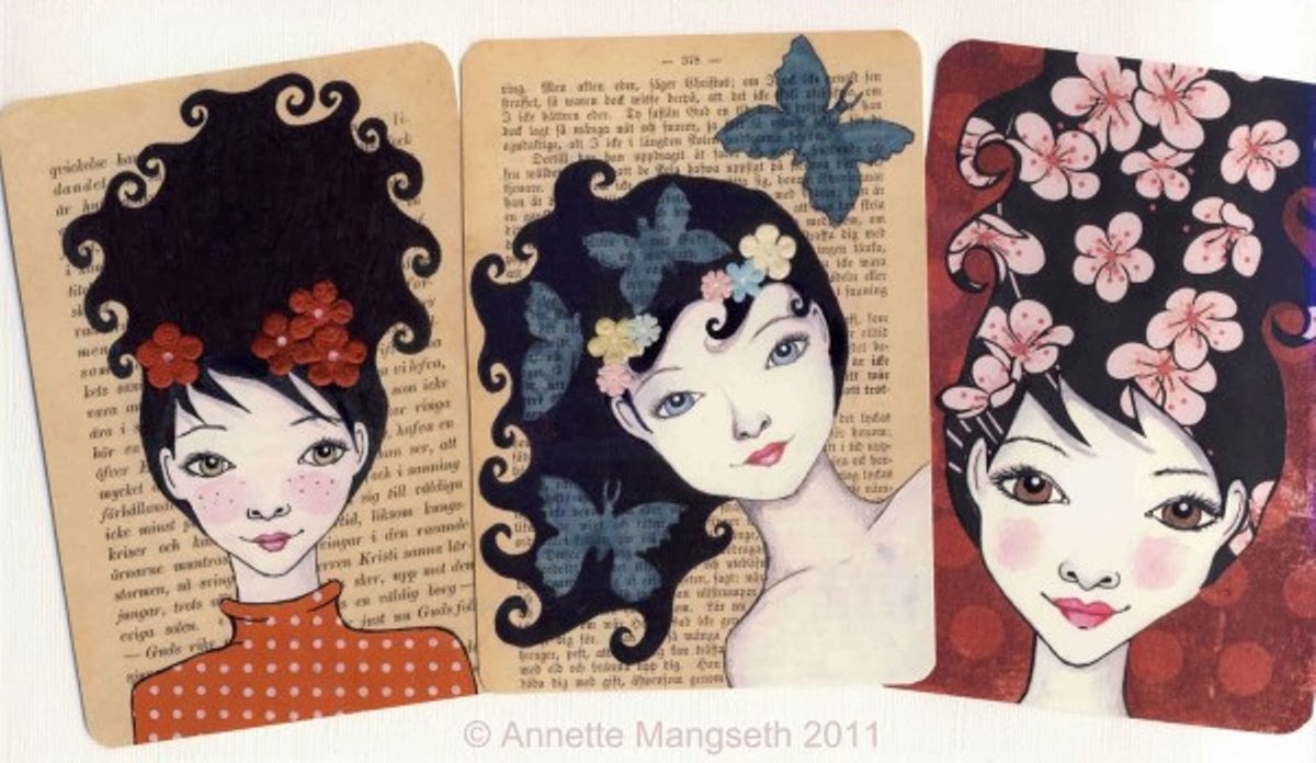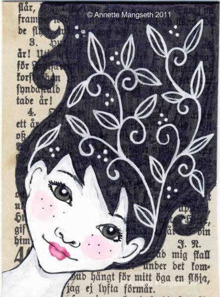 Ens agraden molt, molt, les xiques que il·lustra l'artista noruega Annette Mangseth. Els seu semblant està ple de felicitat i cadascuna d'elles porta els cabells plens d'imaginació, de natura, de formes, de color, de somnis, d'il·lusions. Són els cabells els que li donen la personalitat a cada dona. Ens sembla genial!