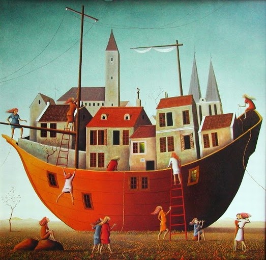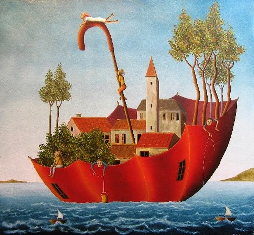 What a dreamy world! I would like to be a part of it and to feel calm and happy there... Maybe it'll happen soon in my dreams?:) Amazing pictures... What an imagination! Scenes from life, yet surreal... I like the richness of colours, too.