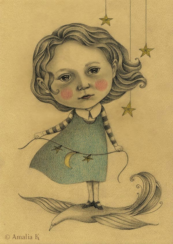 Dear Salvia, I'm so glad you featured Amalia's art - I think it must be seen by more people! She's a sensitive, brilliant, wise artist and a wonderful person. Her drawings are poetic and deep and always so beautiful! I admire her unique style and have become a real "fan" of her amazing blog, since I once found it.:)