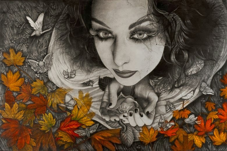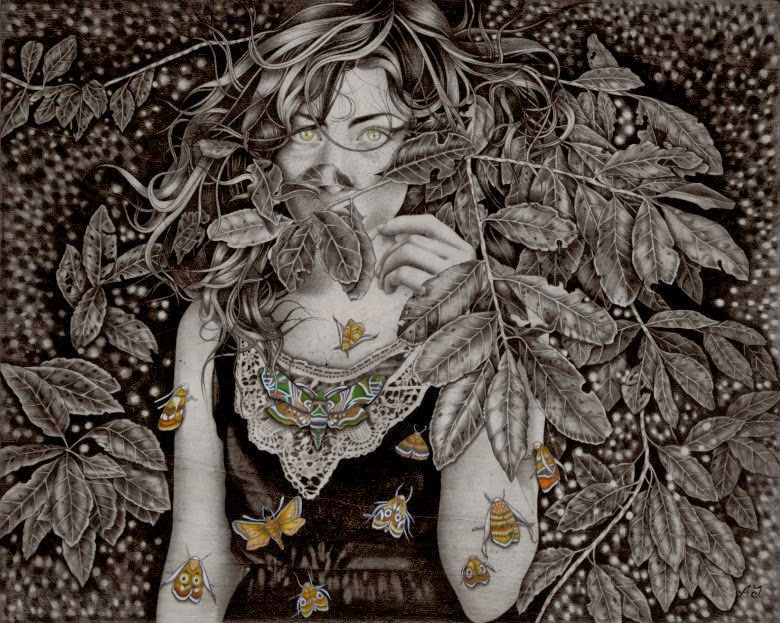 Preciosos dibuixos de joves i dones entre el fullatge i la natura. Sembla que els personatges de les imatges absorbeixen l'entorn i es mimetitzen en ell. Fantàstiques il·lustracions d'Alessia Iannetti.