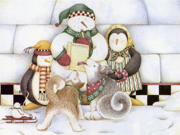 Cóm s'organitzen al Pol Nord per a celebrar el Nadal? Doncs el ninot de neu fa un llistat amb el que reparteix a cadascú les seues tasques i... s'ho passen genial! Així ho veu Debbie Mumm i ens ho narra en les seues il·lustracions.