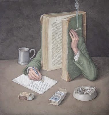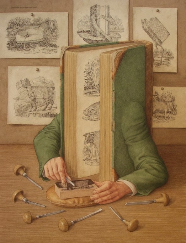 Al llarg de la història de l'art solem trobant-se amb pintures antropomòrfiques, però no és ja tan habitual que es trobem amb llibres prenent forma humana -com fa Andre Martins de Barros, per exemple-, adaptant a més les nostres costums. Jonathan Wolstenholme il·lustra els llibres com si fossin persones: ficant-se la jaqueta o les sabates, llegint, jugant a cartes, barallant-se, escrivint, jugant... Són fantàsticament genials! Books on Books -Llibres de Llibres- una sèrie d'il·lustracions en què el món del llibre s'està descrivint per... els llibres.
