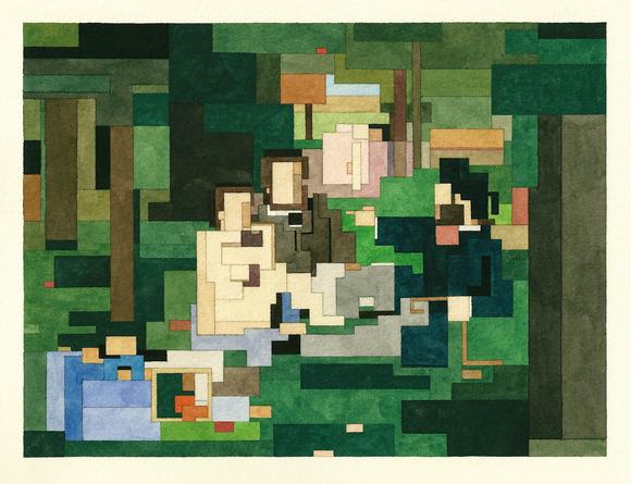 Inspirat en part pels gràfics de 8 bits d'Atari i Nintendo, vells vídeojocs de la seva joventut, l'artista Adam Lister pinta en aquarel·les interpretacions extravagants de les icones de la cultura pop, esdeveniments del món de l'art i quadres famosos. Pseudopixels acolorits versionant la història de la pintura.