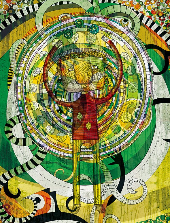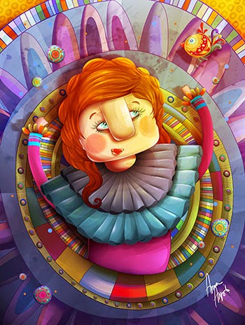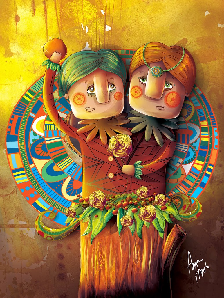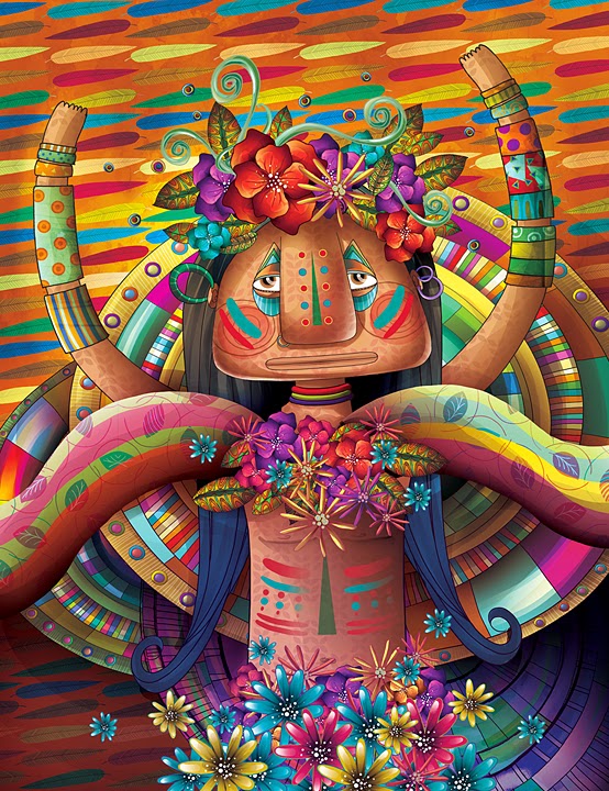 Vulguem o no l'entorn, el paisatge, la cultura a la que pertanyem ens marca. Dins de la pròpia originalitat que té la il·lustradora brasilera Anna Anjos, es veu el seu país en els colors que utilitza. L'exotisme, el ritme, el color... tot i més, amb eixa particularitat que té de dibuixar línies sobre el cos o les cares. Ens agrada!