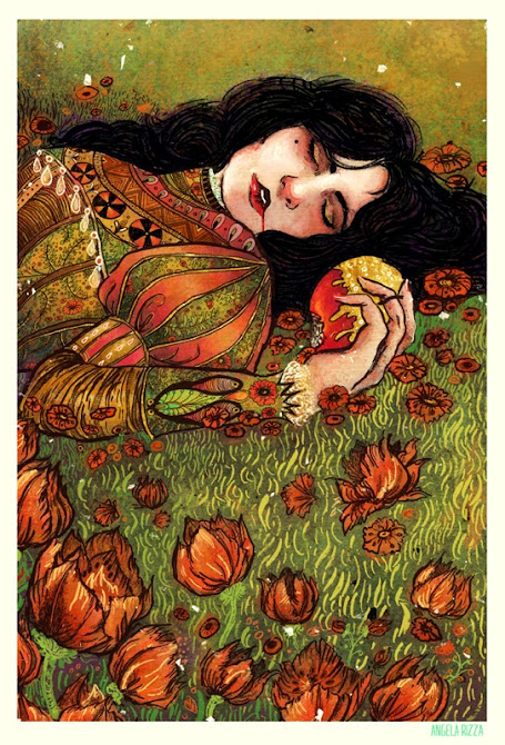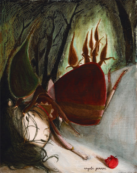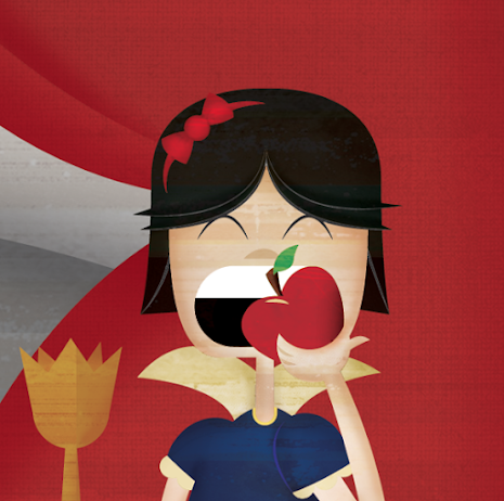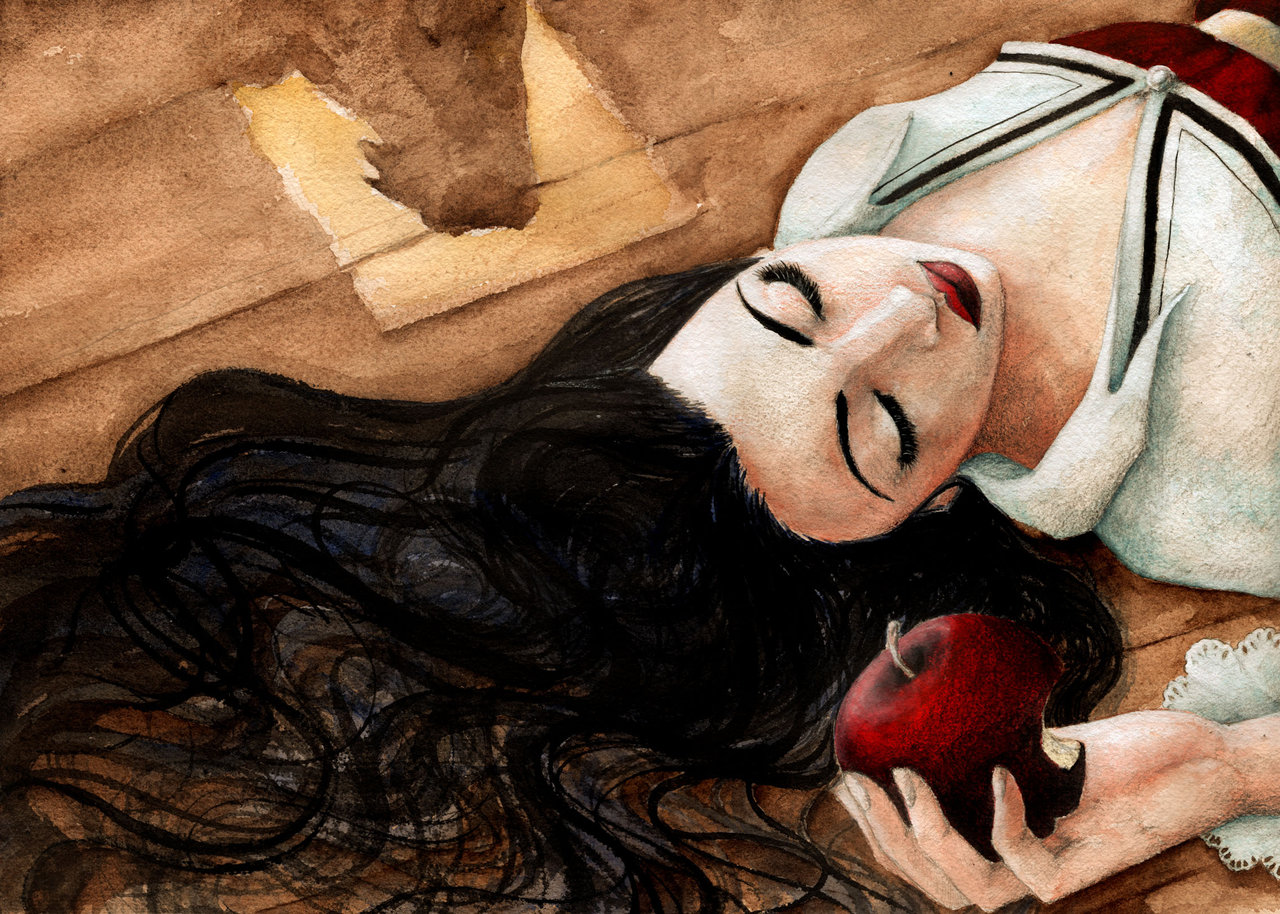 Hui hem seleccionat diverses il·lustracions en les que Blancaneus està a punt de donar-li el mos a la poma o està menjant-se-la o ja està a terra, enverinada. Segur que us agradaran.