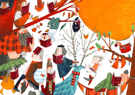 Marion Arbona té una sèrie d'il·lustracions on la lectura és la protagonista (la primera il·lustració és el nostre perfil de facebook). L'alegria de llegir, pel dia i per la nit, sols o amb els monstres. La lectura com a festa. Són fantàstiques.