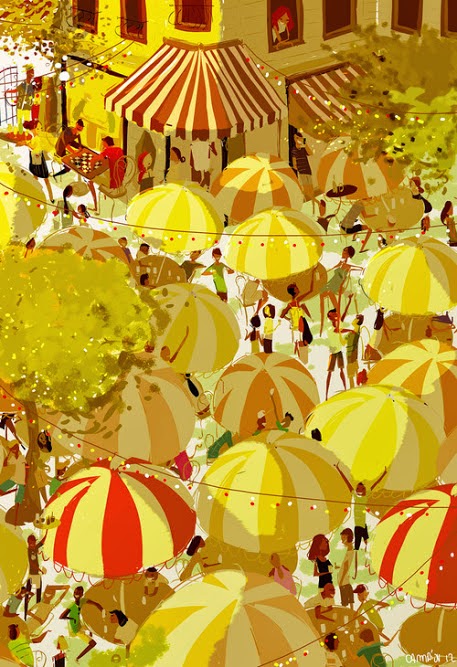 Colors d'estiu als carrers, als pobles i ciutats, que il·lustra amb molta simpatia Pascal Campion.