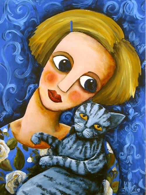 Dones i gats o gats i dones, això il·lustra Olesya Serzhantova. Gats joganers i dones que els acarícien, que comparteixen el seu temps de descans amb la seua companyia, que gaudeixen de les seues entremaliadures. Ens encanten.