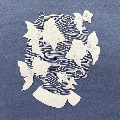 Ja he vist al llarg del blog les preciositats que es poden fer en papers retallats -paper cut. Evidentment... s'ha de tindre molta paciència per aconseguir-ho, a més de creativitat i gran tècnica. Kanako Abe té tota una sèrie de il·lustracions realitzades amb aquesta tècnica de paper retallat que són una autèntica delícia.