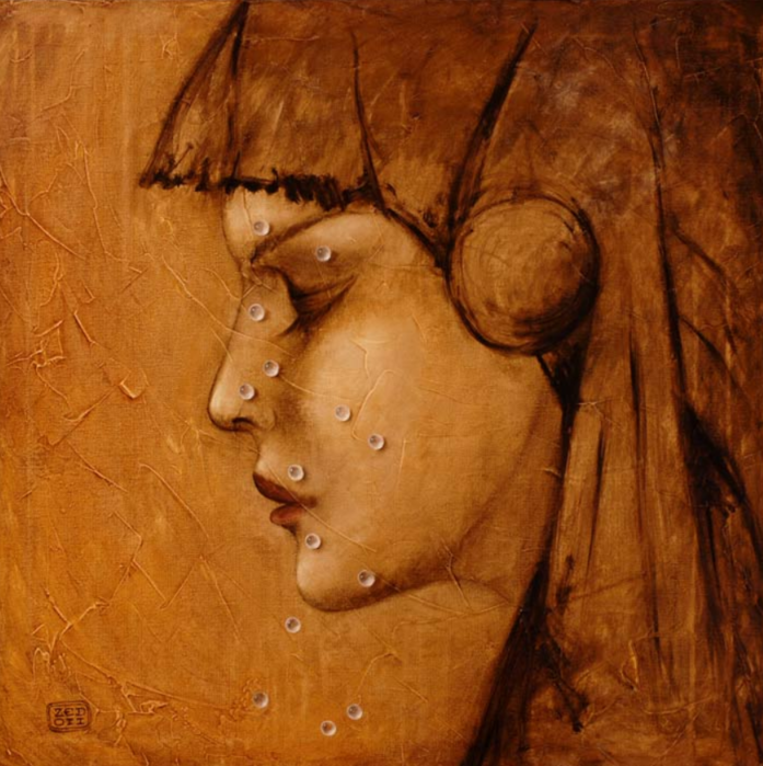 Entre la terra i el foc, colors terra i colors passió, així surten les dones d'Eduard Zentsik. Recursos florals i animals, elements de la natura s'entremesclen en les figures femenines.
