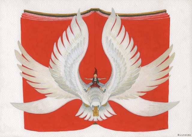 Seguint el seu propi estil (molta fantasia, colors i abigarrament) l'artista Junaida ens presenta el món dels llibres i la lectura. Precioses imatges il·lustrades.