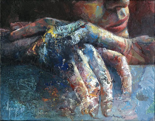 Les mans formen part del nostre cos i de la nostra expressivitat. David Agenjo ens mostra aquestes mans, mans d'artista, totes tacads de pintura; mans que són instruments al servei de la creativitat.