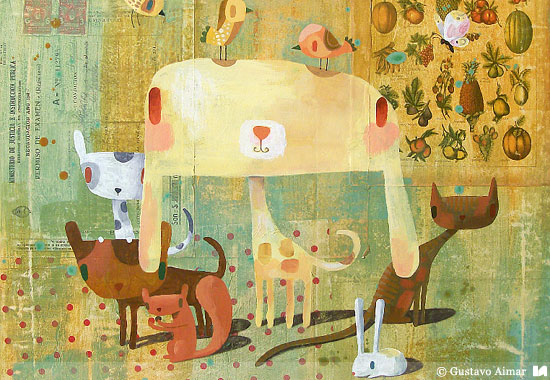 Fa temps que seguim l'obra de Gustavo Aimar perquè la trobem molt interessant. Té un segell ben personal, tant en la tècnica com en la seua creativitat. Tendresa, simpatia, bellesa, dinamisme... Doneu-li una ullada i ho comprovareu.