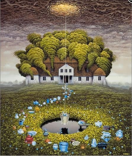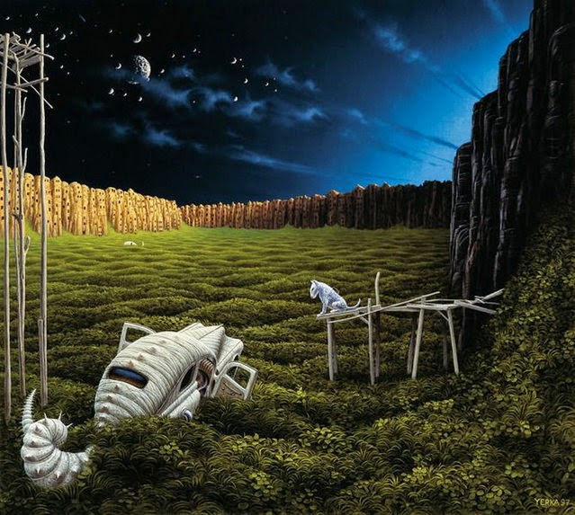 Hui us volem descobrir o redescobrir un il·lustrador que ens sembla màgic: Jacek Yerka -Polònia, 1952-. Com si la imaginació es plasmara en realitat a través de les pinzellades, les il·lustracions d'aquest artista polac són màgiques. Crea tot un món personal que ell mateixa anomena Yerkaland. Trobem en les seues il·lustracions reminiscències d'altres grans artistes: Dalí, Van Eyck, Dierck Bouts, Robert Camping, Bosch i Magritte. Però sempre amb una empremta molt personal, un surrealisme realista. Juga amb la perspectiva per a fer simbiosi de diferents espais, a la manera d'Escher, però diferent.