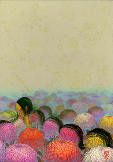 Ens agrada la manera que té Fuco Ueda de mostrar la seua visió particular del món de les joves. Amb gran sensibilitat va retractant parts del seu imaginari, moltes vegades vinculat a l'aquositat del món submarí. Surrealisme juvenil, amb peixos que passegen entre faldes o somnis sobre l'arena, cabells que s'estenen sobre un fons de flors i barrets que són immolats.