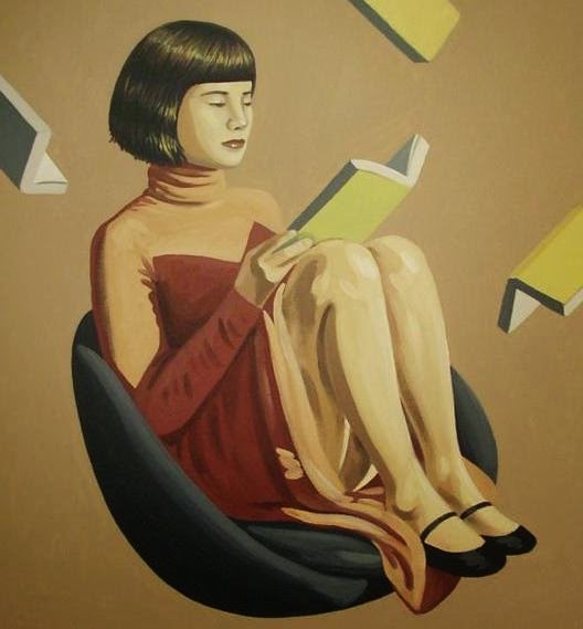 Homes i dones llegint, llibres oberts a les mans dels lectors, muntons de llibres esperant el seu torn per a ser llegits, diferents actituds davant la lectura... tot açò ho podem veure en les il·lustracions de Pablo Gallo.