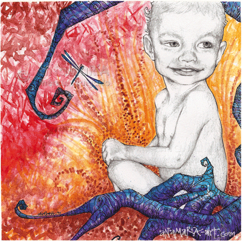 Els àngels són un dels personatges "celestials" més il·lustrats. Cada artista dona la seua versió i aquests àngels, de Danguole Jokubaitiene, són veritablement "angelicals", simpàtics, amorosos, tendres. Amb aquest nassets empindongats i envoltats d'animalets, sens fan molt propers i familiars.