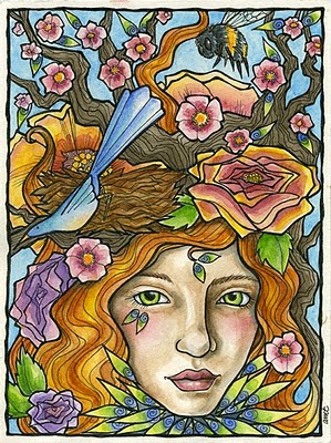 Dilluns de Pasqua i primer dia del mes d'abril, dia primaveral. El camps està ja ple de flors. Les il·lustracions que hui hem seleccionat són tota una oda a la primavera, simbolitzada de forma femenina i envoltada de flors. La primavera, un renàixer de la natura, com un part de la Terra.