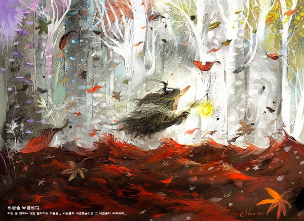 Entre llums i ombres, així són les il·lustracions de Sasha Bassari. Persones i animals que s'amaguen o es deixen entreveure, jugant amb la mirada de l'espectador - una mirada molt tendra i honesta-. Molta delicadesa i bellesa.