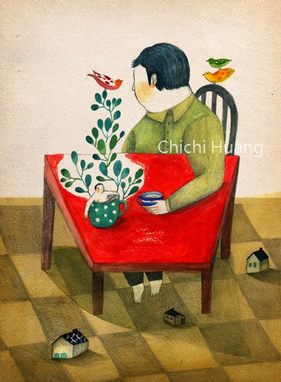 Cada vegada coneixem més il·lustradors xinesos i ens agrada molt el seu treball artístic, amb un segell personal i molta creativitat. Hui volem compartir amb vosaltres les il·lustracions de Chichi Huang, un artista que seguim des de fa temps i del que hem anat pujant diferents il·lustracions al blog. La delicadesa del traç, el surrealisme de les imatges, l'impacte del color en cada presentació, l'empatia que crea en la mirada de l'espectador. Són genialment belles i suggerents.